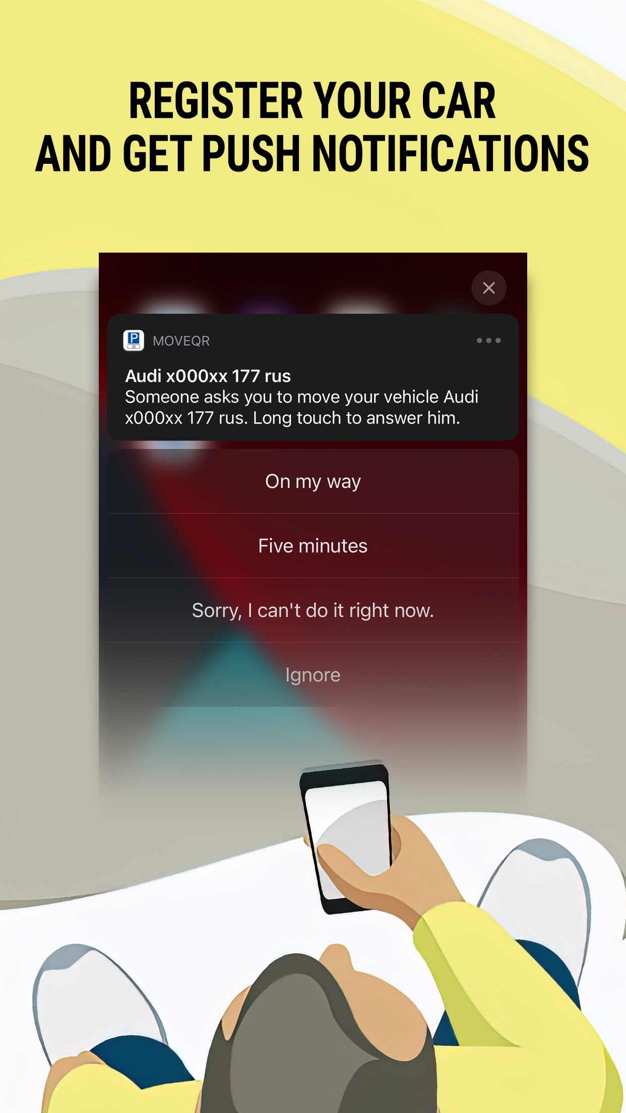 You will be instantly notified when someone asks you to remove your vehicle.